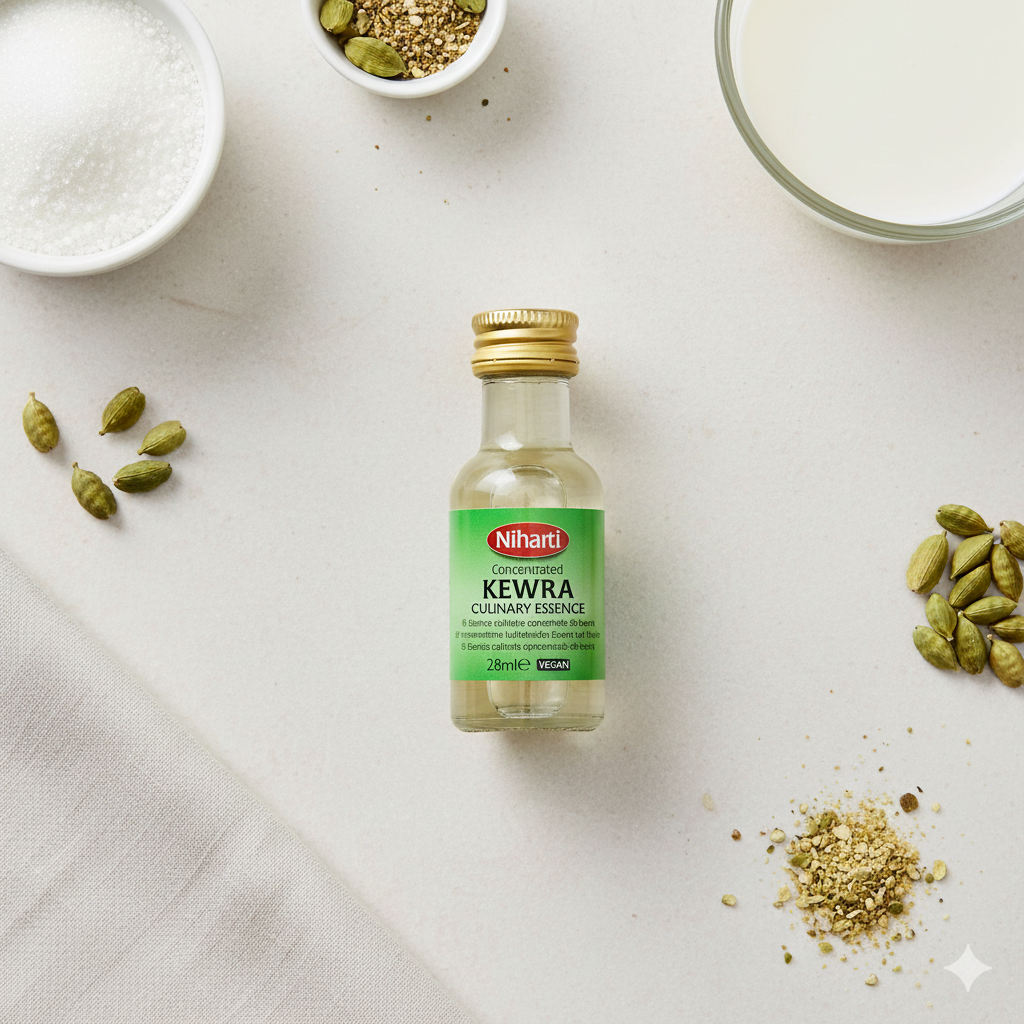 Niharti concentrated kewra culinary essence 28ml for floral aroma in desi recipes.