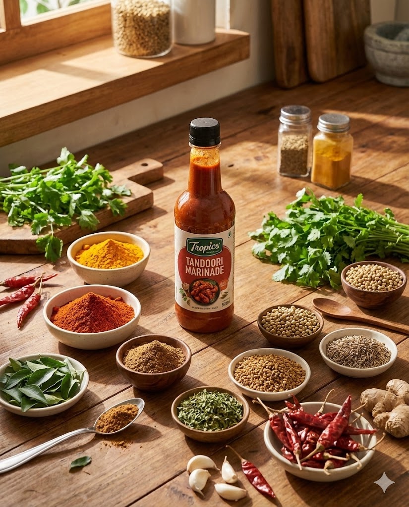 Tropics Tandoori Marinade 500ml offers a flavorful tandoori marinade, providing a rich and smoky taste that is perfect for grilling.